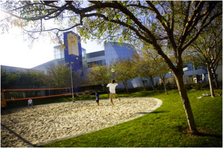 The Googleplex, Google’s corporate HQ in Silicon Valley, boasts an impressive array of wacky furniture and leisure activities including two swim-in-place pools (treadmills for swimmers), and even a volleyball court.